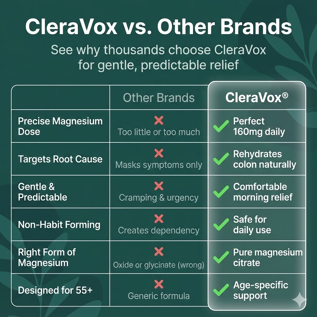 The dose makes the difference. Our 160mg serving is designed for calm, sustained magnesium support — not a digestive flush. Most people experience no urgency or discomfort whatsoever.